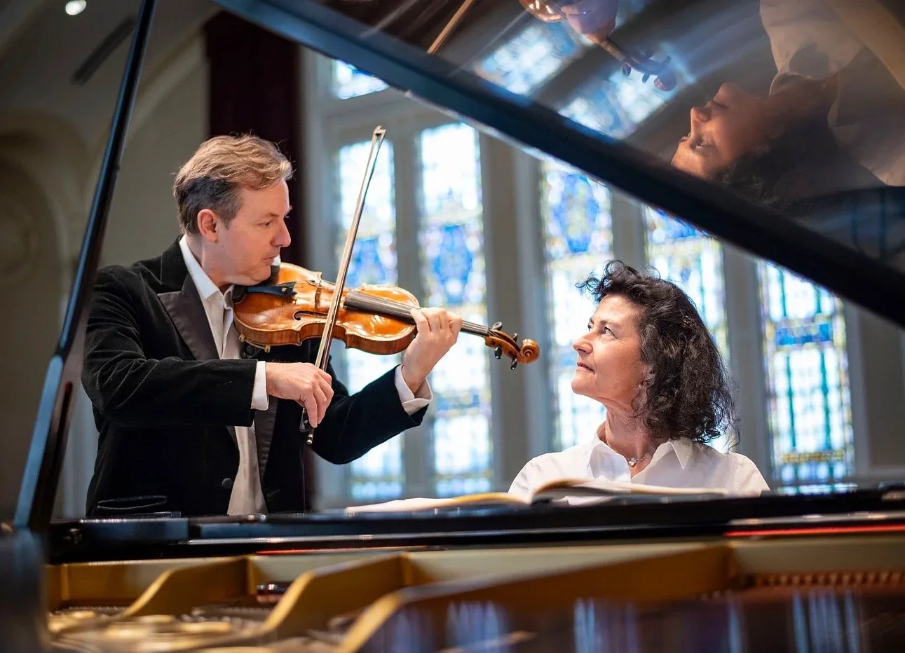An evening of piano and violin explorations featuring music by Schubert, Enescu, Foss, Del Tredici, and Harris.
