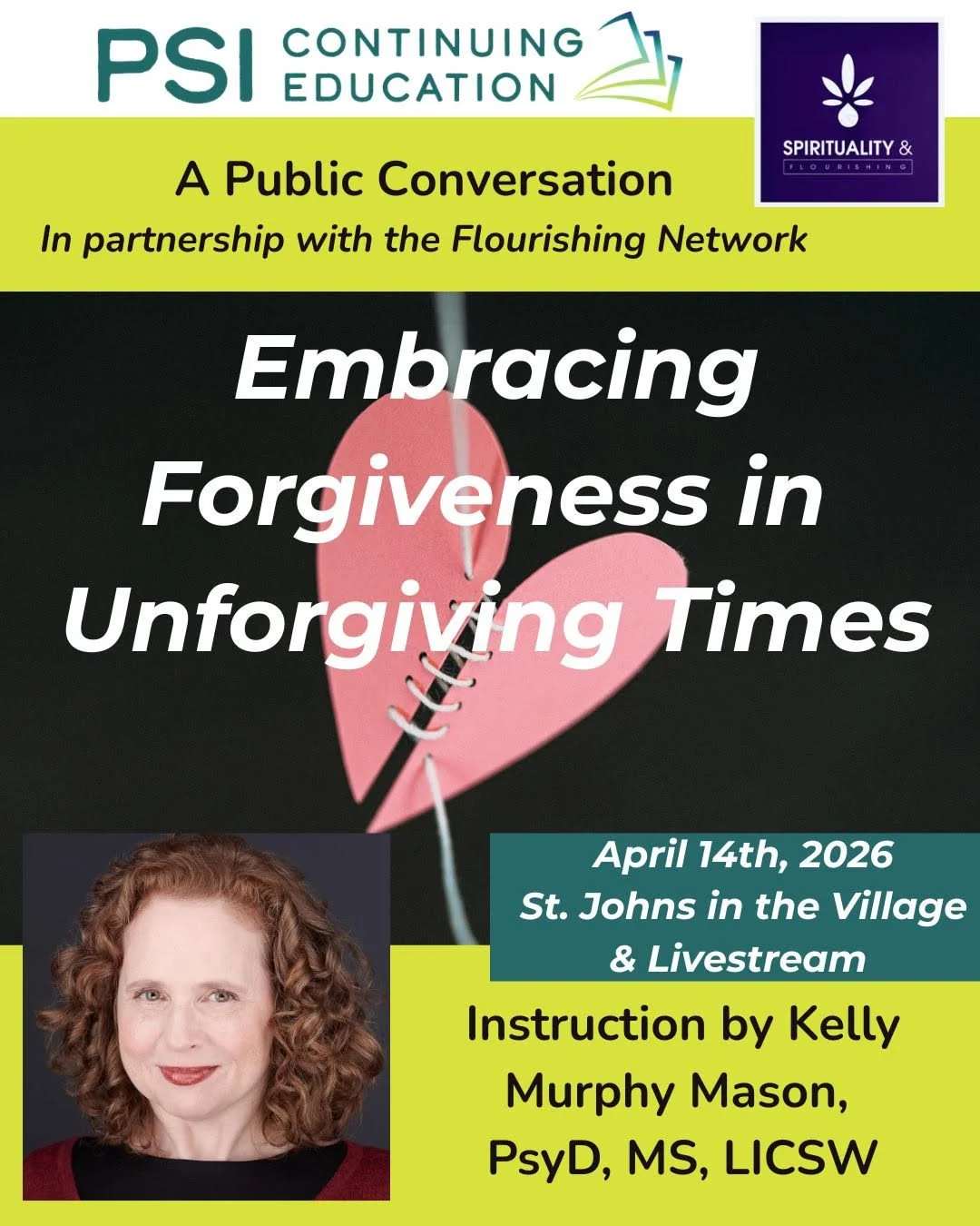 In an era marked by intense pain, heightened outrage, and increased polarization, offering forgiveness can feel difficult, if not impossible. Yet across wisdom traditions and therapeutic frameworks, the act of forgiving is recognized as an indispensable and humane practice that restores and renews our relationships. It allows us to reclaim our personal agency, to loosen the grip grievance has on us, and to move toward more compassionate living. This talk will consider forgiveness as both a psychospiritual process and ethical stance that simultaneously refuses to absolve, normalize, or legitimate past, present, or future wrongdoing.